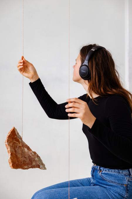 Les visiteurs sont invités à écouter la même mélodie au casque et à effleurer doucement les fragments de marbre, ressentant ainsi le pouls de lointains auditeurs invisibles.